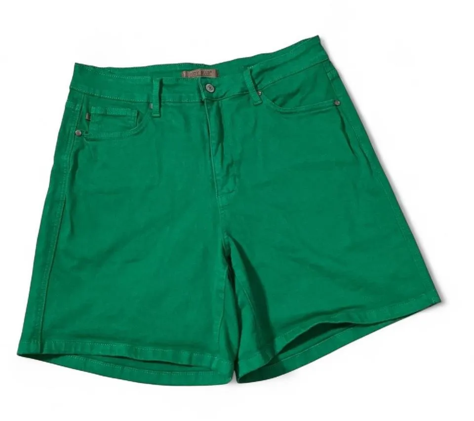 Judy Blue garment dyed green denim shorts a vibrant addition to any casual wardrobe. These shorts feature a classic five-pocket design and a comfortable mid-rise fit, perfect for everyday wear. Ideal for a picnic in the park or a casual day out with friends. Keywords: Judy Blue, denim shorts, green shorts, garment dyed, mid rise, casual shorts, summer shorts, plus size shorts, everyday wear, comfortable, vibrant, cotton blend #Streetwear #Contemporary #Vacation #Festival