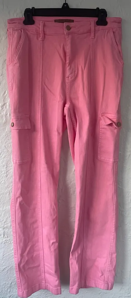 Judy Blue Garment Dyed High Waist Straight Leg Cargo Jeans Pink Pockets; 11/30 Size undefined - $45 - From Kate