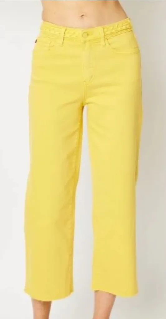 Judy Blue high rise wide leg cropped jeans yellow raw edge 9 29 new with tags - $40 - From Anna