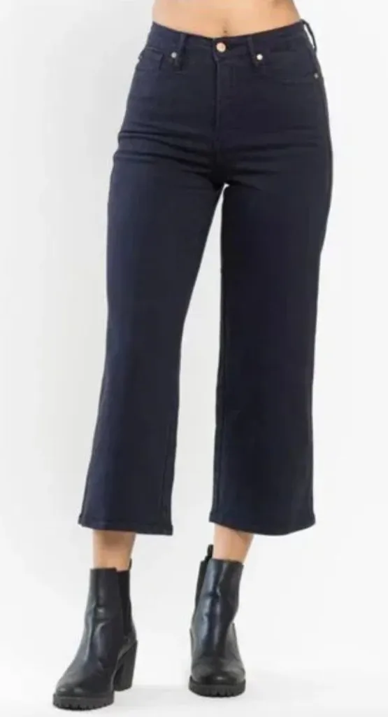 Judy Blue High Waist Tummy Control Garment Dyed Wide Leg Crop Navy Jeans Size 29 - $36 - From Josie