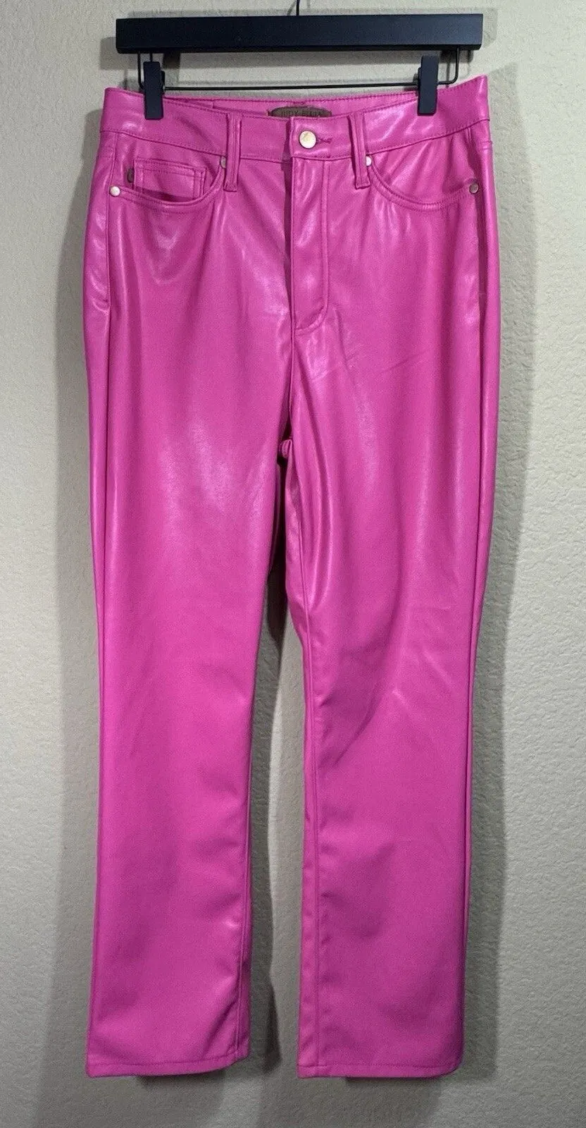 Judy Blue Hot Pink Faux Leather Tummy Control High Rise Straight Leg Pants Women's Size 7/28 Pocket... Show more