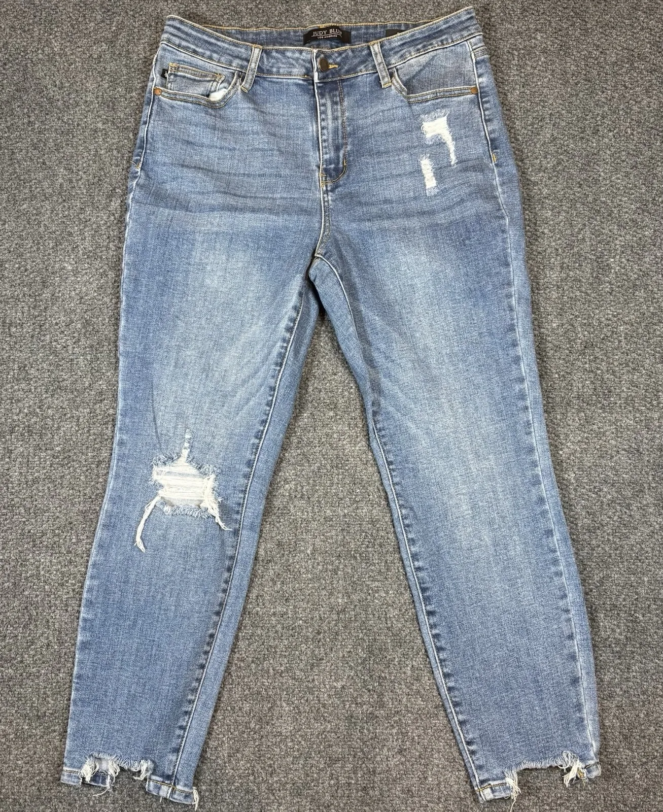 The Judy Blue Jeans Women's 15/32 Blue Slim Fit Shark Bite Raw Hem Distressed are a stylish and vers... Show more