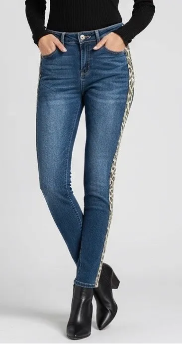Judy Blue Jeans Womens 7/28 Blue Denim Logo Skinny Leg Leopard Print Side Stripe - $31 - From Ines