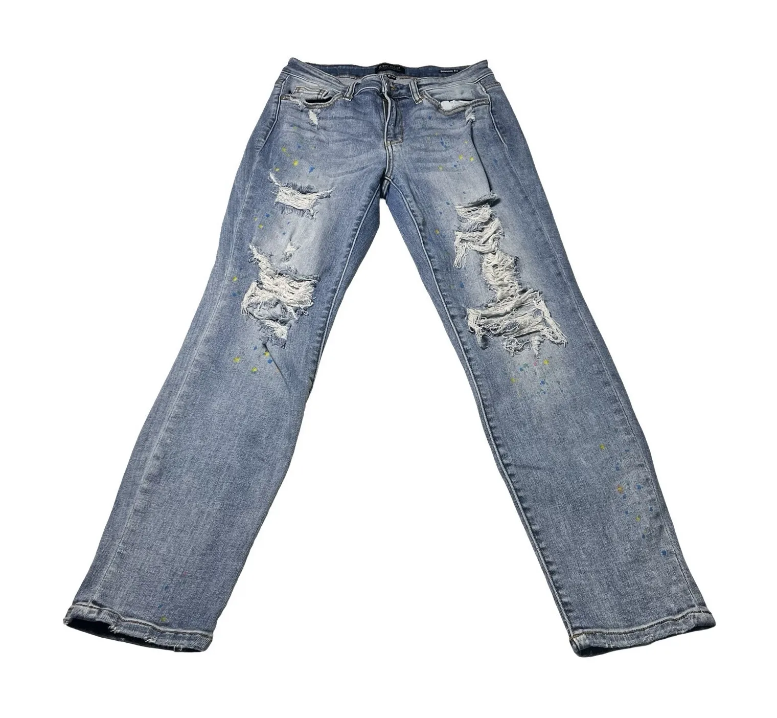 Judy Blue Jeans Womens 9/29β€Ž Boyfriend Fit High Rise Rainbow Paint Splatter - $30 - From Sam