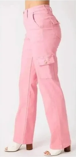 Judy Blue Cargo Pants Womens 7/28 Pink Utility Casual Pockets Button Front Condition: Excellent condition. No flaws to note. Size: 7/28 Material: 93% COTTON, 6% POLYESTER, 1% SPANDEX Features: Front seam details, Side cargo pockets with gold-colored buttons, Gold-colored button closure at waist, Durable fabric, Comfortable stretch Measurements: Waist: 14" Rise: 11" Inseam: 29.5" Tag: Everyday, Streetwear, Spring, Comfortable, Modern, Outdoor, Travel, Gorpcore, Versatile, Durable