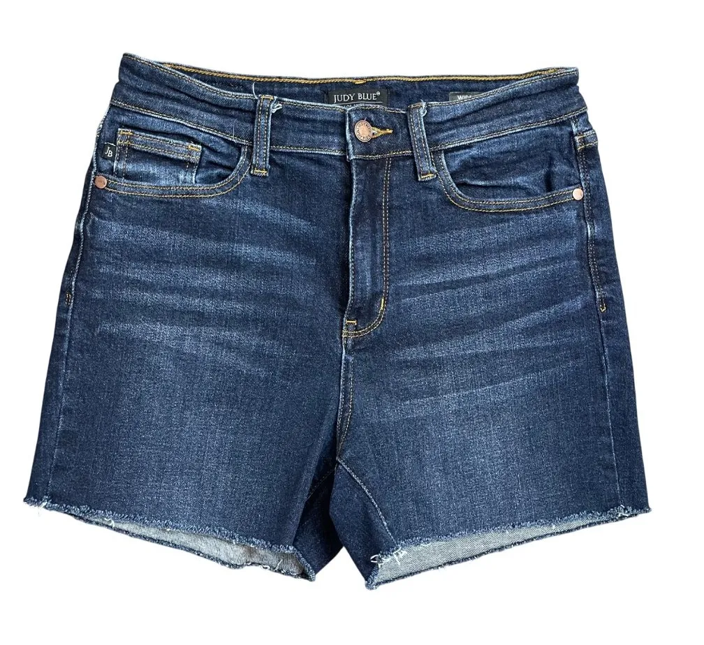GUC - Reworked, Cut Off Judy Blue Reworked Jean Shorts Women's Size 7 (28) Jorts Dark Wash Denim 93% Cotton 6% Polyester, 1% Spandex Raw hem adds a casual, edgy style Functional front and back pockets Button and zipper front closure These Judy Blue shorts feature a dark wash denim with a raw hem design. Crafted with durable materials, they balance style and comfort for everyday wear. Features: • Solid • Vietnam • Machine Wash Size: Womens 28 Measurements are APPROXIMATE: Waist: 14.5 in / 37 cm Rise: 11 in / 28 cm Inseam: 4 in / 10 cm Condition: Pre-Owned Good No Flaws Noted. See all photos for condition. Smoke Free Home *I have a GSD and cannot guarantee that items are free of all hair!