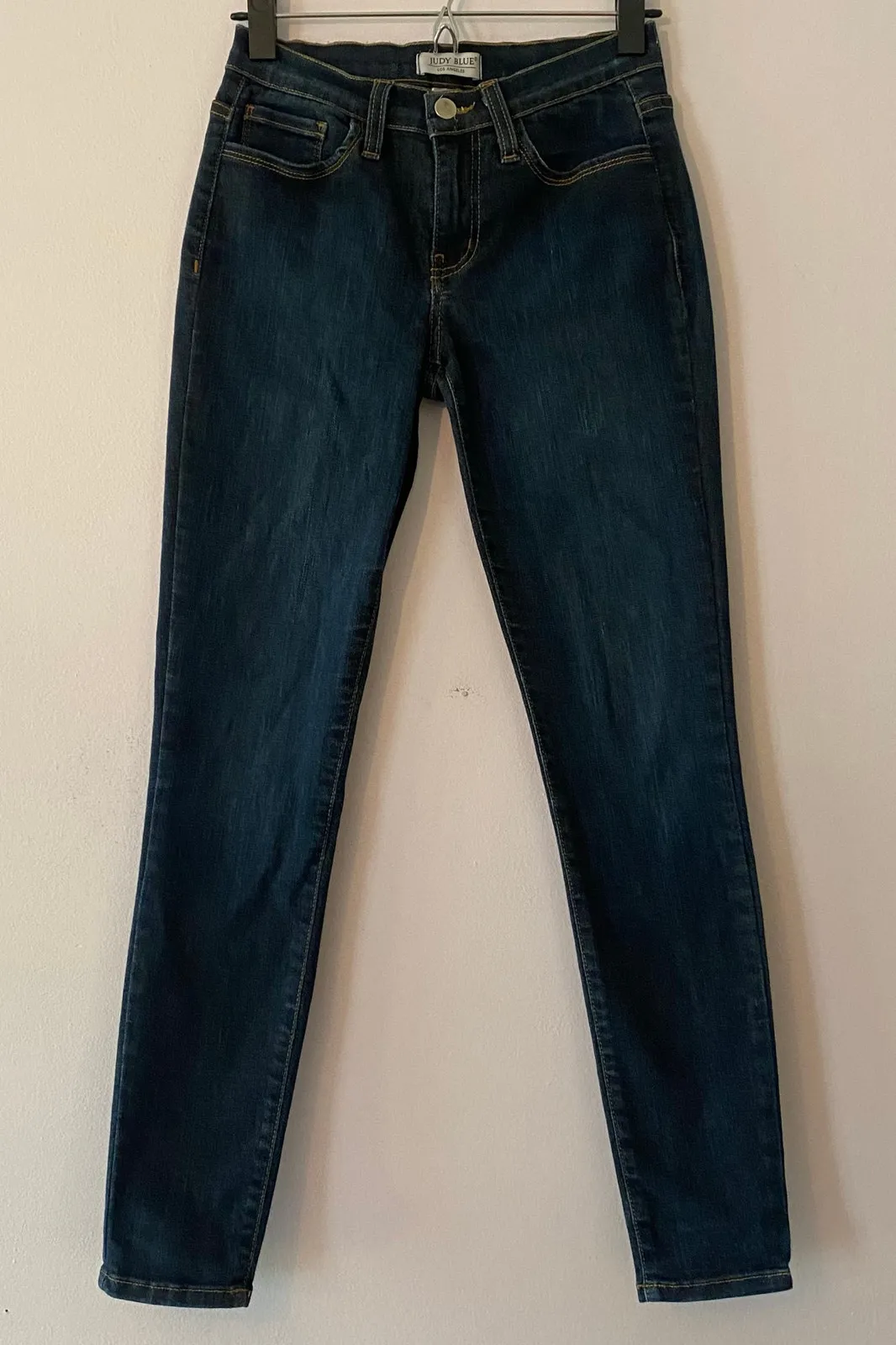 Judy Blue Women's size 5 / 27 Skinny Fit Dark Wash Jeans Made in USA. Judy Blue brand women's skinny jeans in a size 5JB or 27 waist. Dark wash colorway. Stretchy fabric. Pockets at the hips and back. Zipper closure. Measurements as pictured. In great pre-owned condition, see photos for more details. Always feel free to ask any questions you may have! Reasonable offers accepted.
