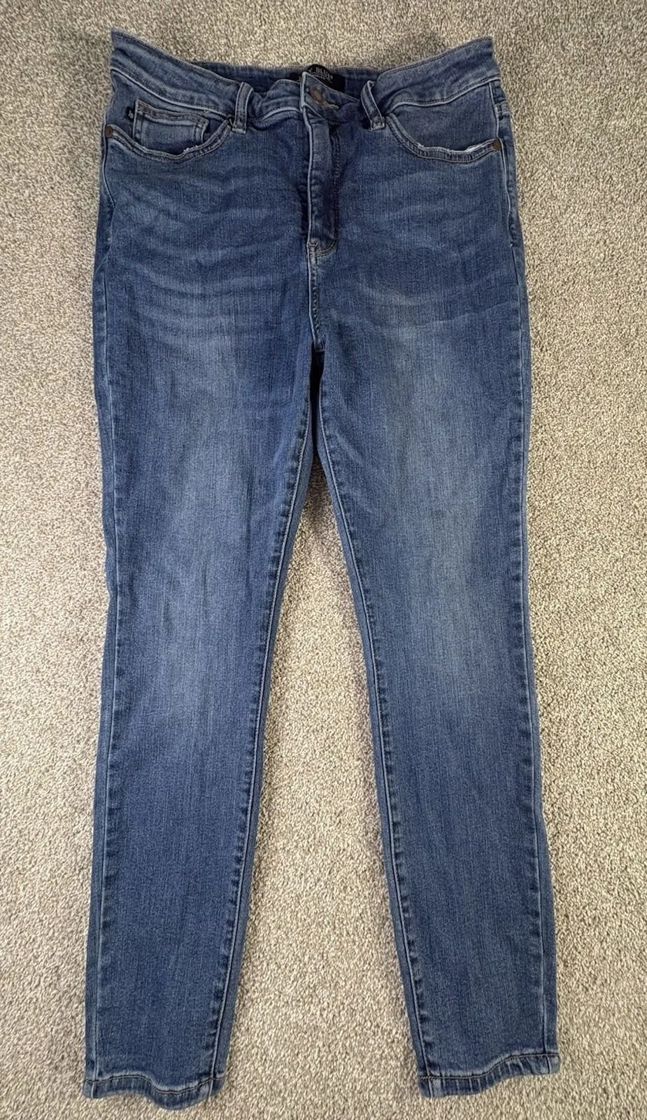 Judy Blue Los Angeles women's skinny jeans in a classic medium wash. Comfortable stretch denim with a flattering mid-rise fit. Measurements (laid flat): • Waist: 19" • Rise: 12" • Inseam: 29" • Leg opening: 6" Excellent pre-owned condition. No holes, stains, or excessive wear.