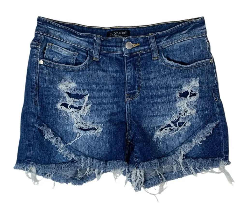 Judy Blue Women's medium denim Blue shorts distressed ruffle coastal cowgirl - $34 - From Bea
