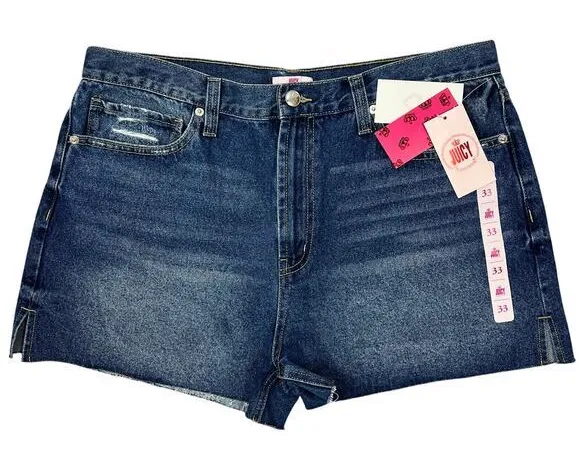 Juicy by Juicy Couture Anna Relaxed High-Rise Jean Shorts Cutoffs Shorties Heart Patch Distressed De... Show more