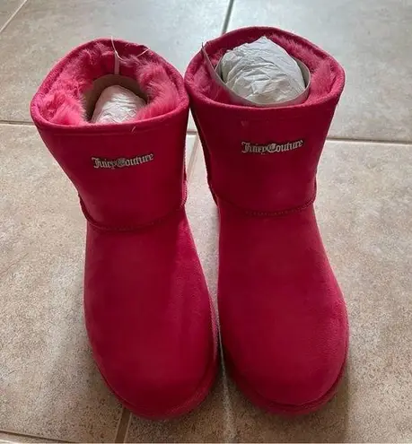Heel height - 0-1" Memory foam insole Pull-on winter boot Plush inside Juicy Couture repeating on ri... Show more