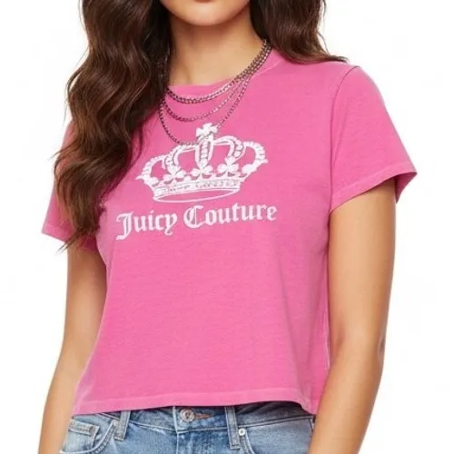 #JuicyCouture #Forever21 #HotPinkCrop #Y2KFashion #90sRetro #GraphicTee #CroppedTee #CollaborationPiece #MillennialCore #NostalgicFashion #PopCulture #BrightPink #RetroGraphics #VintageVibes #ThrowbackStyle