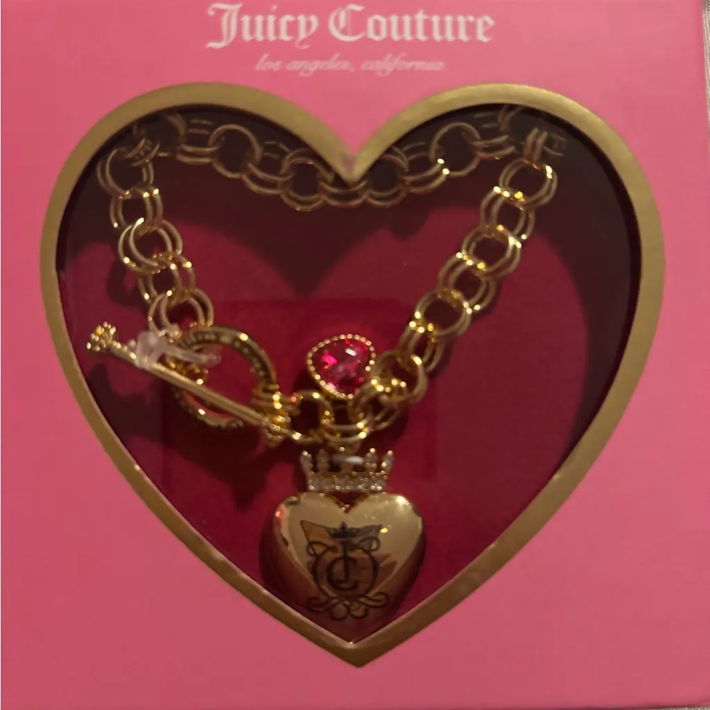 Chic Juicy Couture necklace featuring a gold heart pendant. Adorned with pink accents for a stylish... Show more