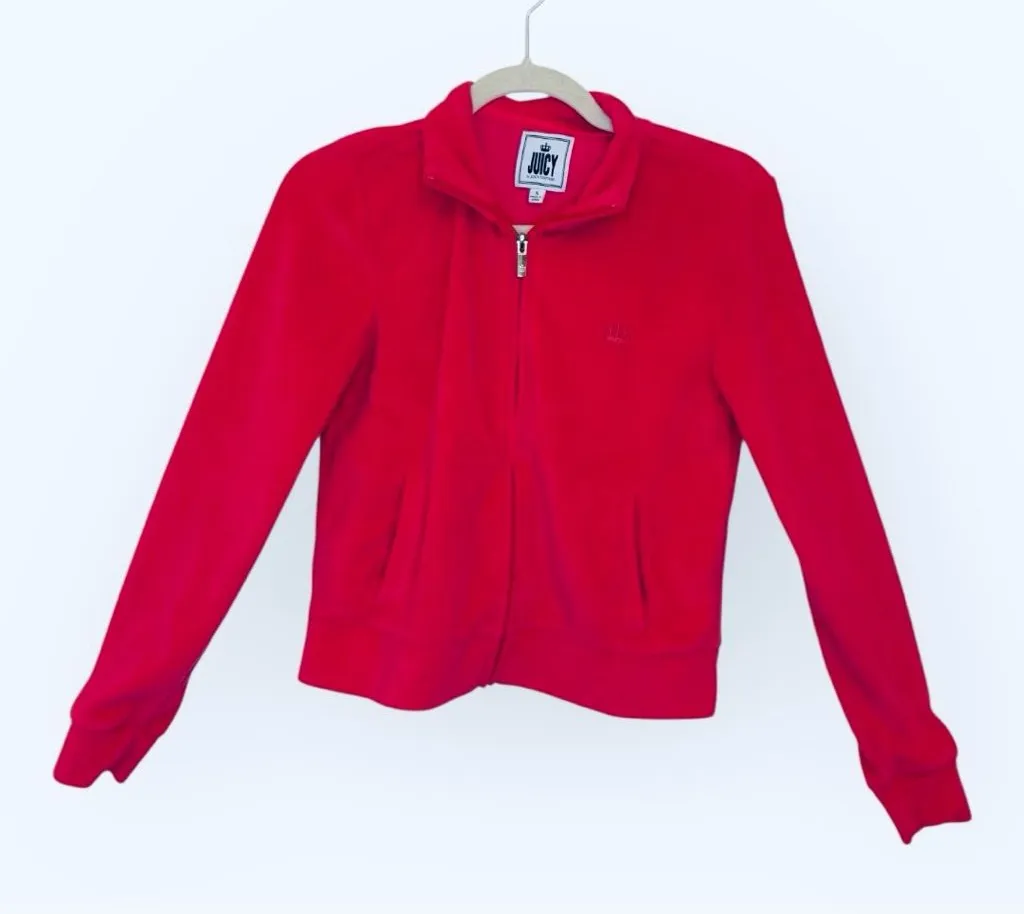 Pre-owned and in excellent condition, this hot pink velour zip-up from Juicy Couture features a crop... Show more