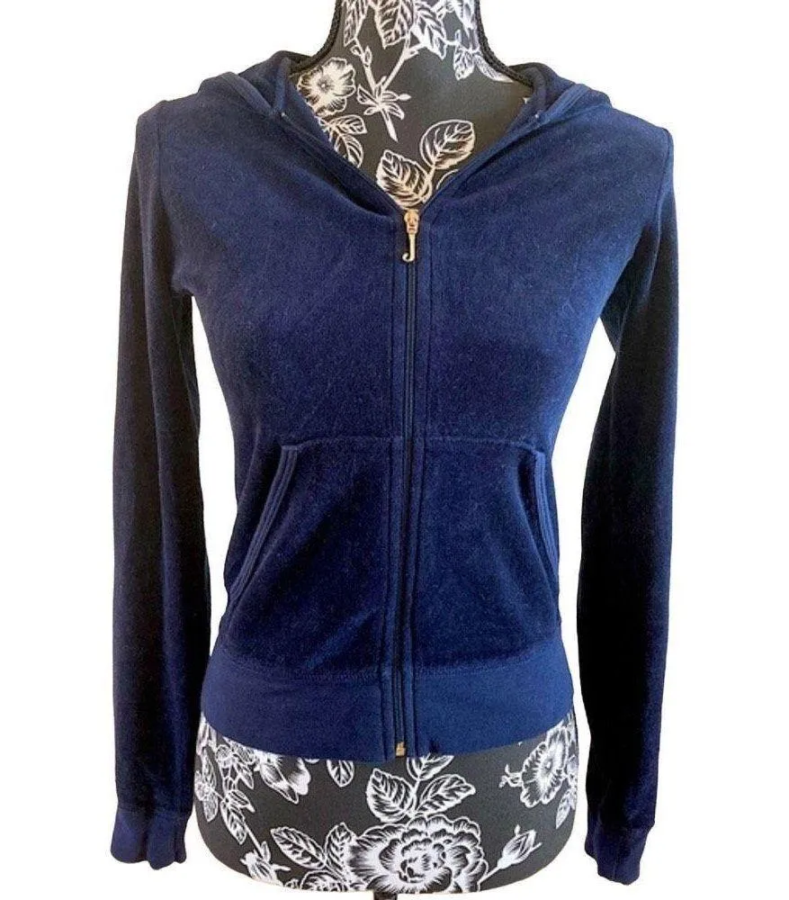 Brand: Juicy Couture Condition: Pre-loved Style: Full zip hoodie Size: Small Color: Dark blu... Show more