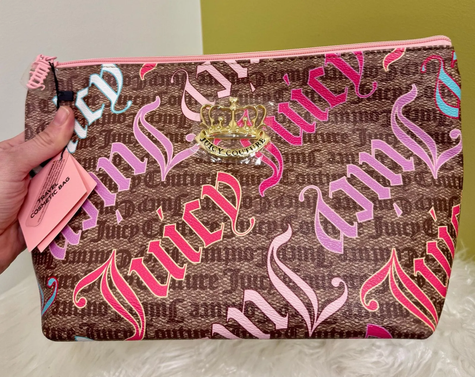 Juicy Couture Makeup Comestic Bag in an XL size New with tags Rainbow All Over Logo Chunky gold cr... Show more