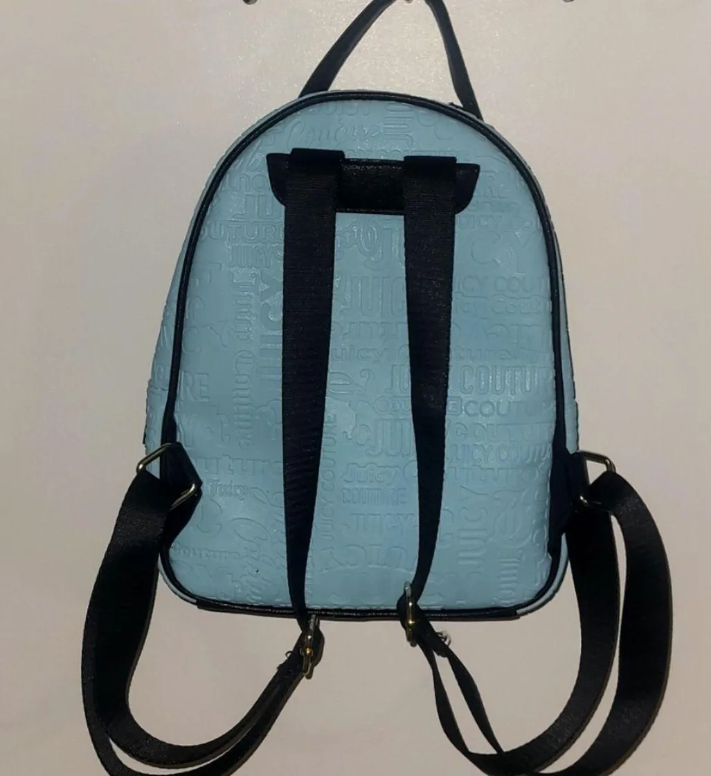Juicy couture mini back pack in excellent shape light blue and black . Very cute and comfortable