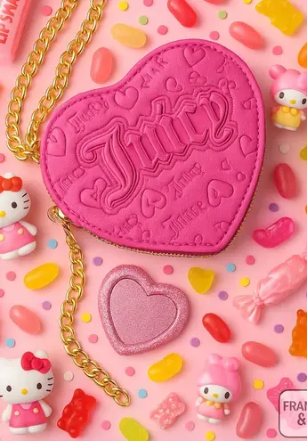 Serve full Y2K glam with this Juicy Couture heart-shaped wallet wristlet in vibrant hot pink. Crafte... Show more