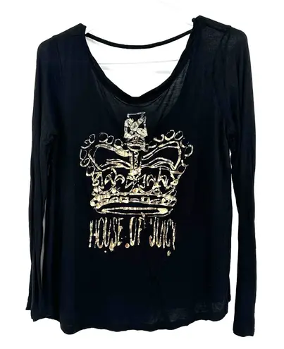 Juicy Couture Size Medium Shirt Black Graphic Print Crown Open Back Long Sleeve Some Discolo... Show more