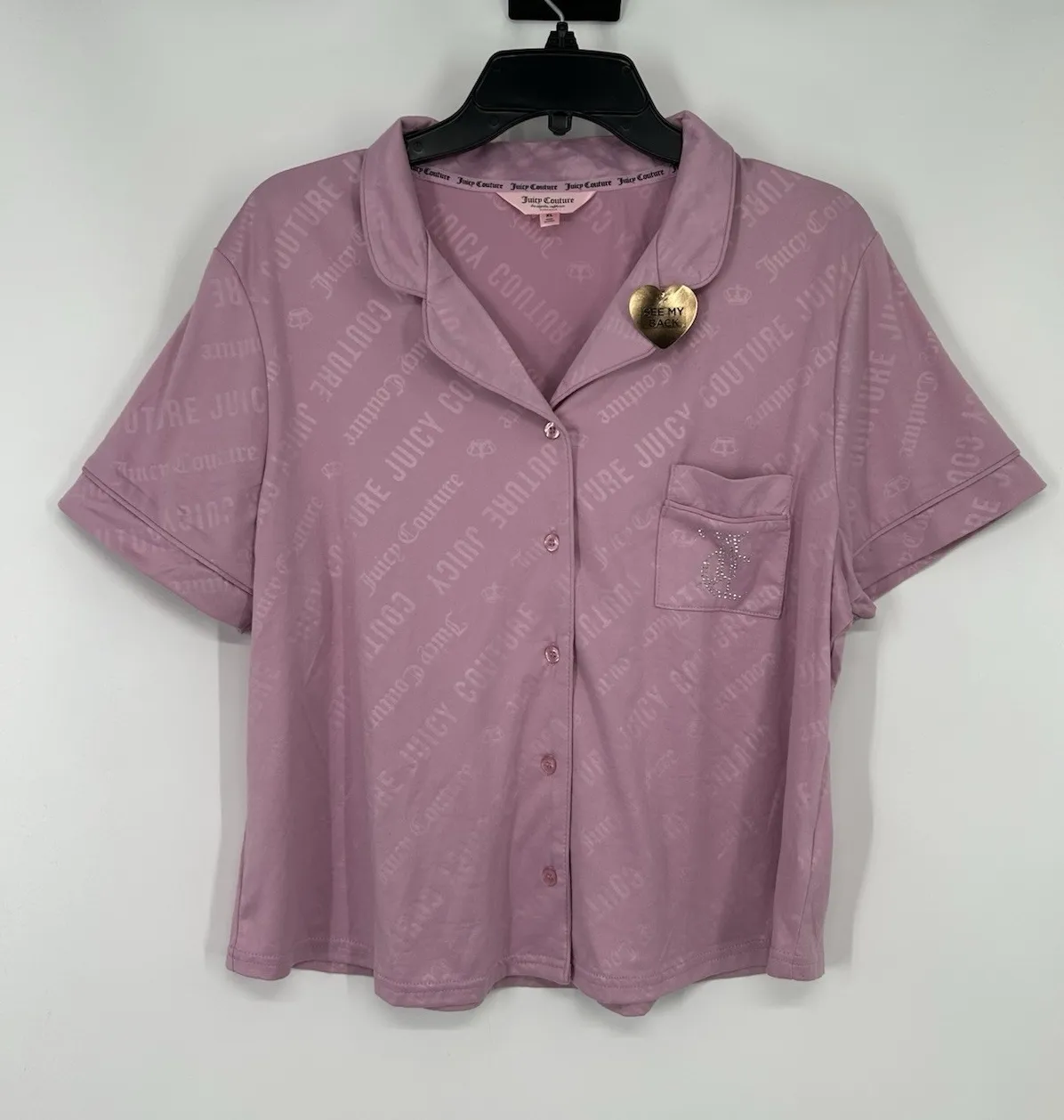 Juicy Couture Sleep Shirt Button Up All Over Print AOP Rhinestone Graphic XL Brand New With Tags... Show more