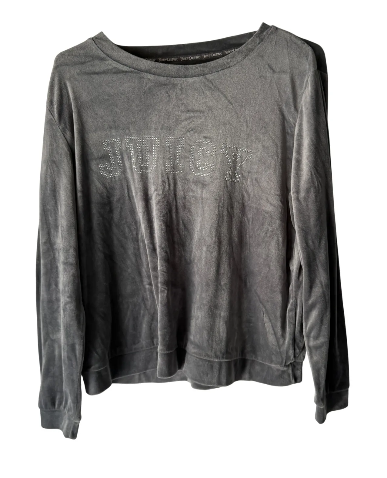 Juicy Couture Velour Sweatshirt Rhinestone Logo Gray Women's Size L Long Sleeve Style: Pullover Dep... Show more