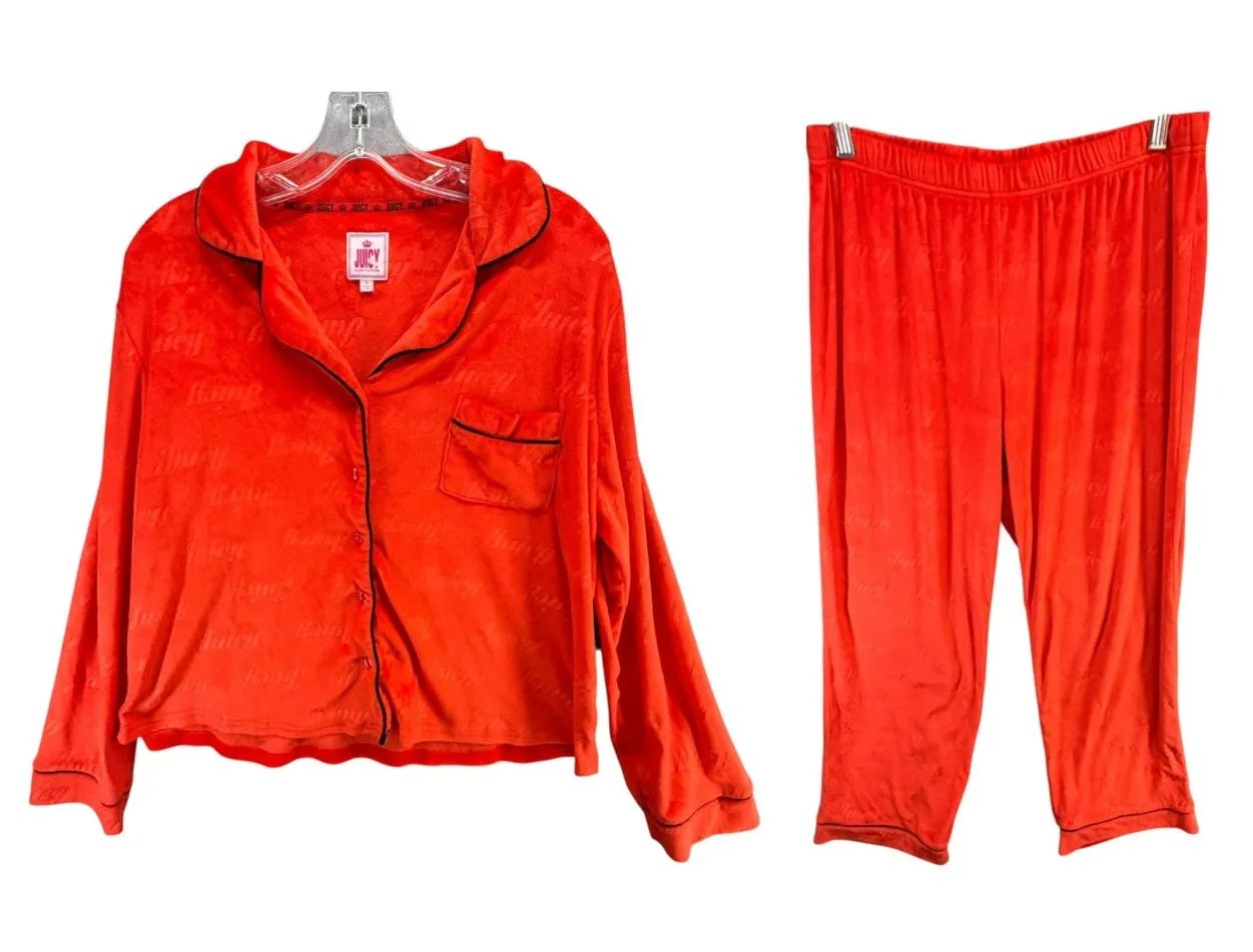 Juicy Couture Velvet Pajama Set Top & Pants Womens Size L Red Velour Embossed Logo Holiday Excellen... Show more