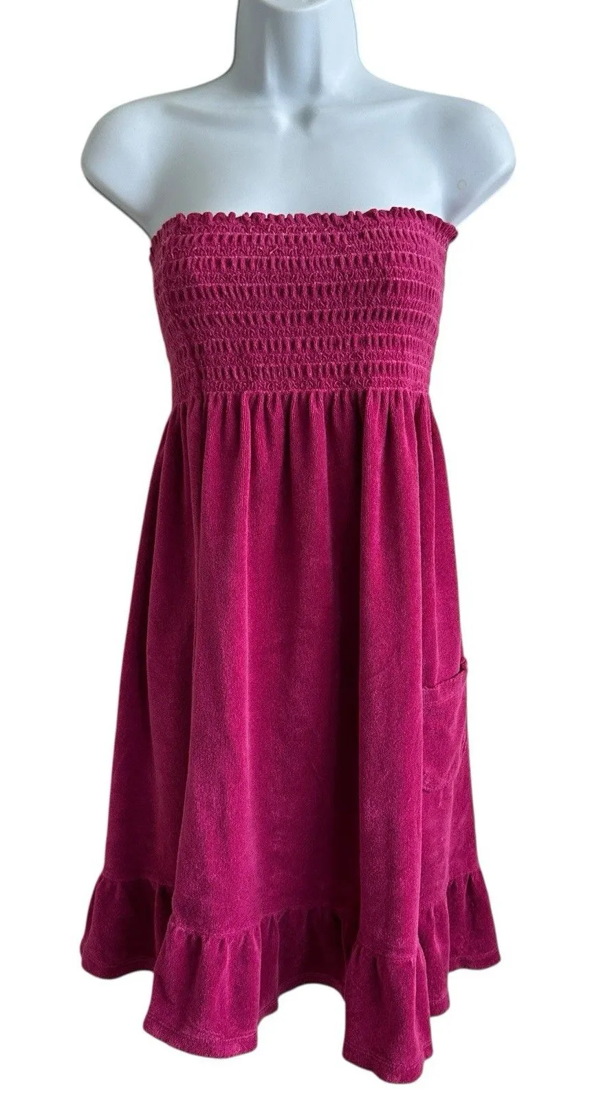 The Juicy Couture Vintage Y2K Pink Terry Cloth Cover Up Dress is a stylish and comfortable option fo... Show more