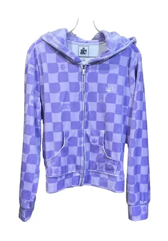 Juicy Couture Hoodie Purple Checkered Crown Full Zip Velour Jacket Womens 2X 95% Polyester 5% Spande... Show more