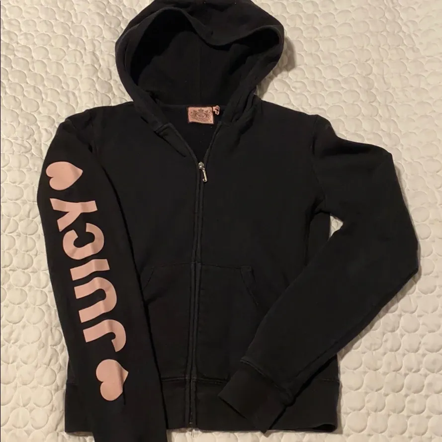 Juicy couture Y2K small black hoodie jacket pink logo on sleeve zip down pockets - $75 - From Sofia