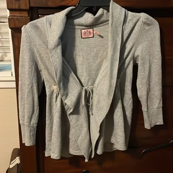 Pre Loved in Good Condition Y2K Juicy Couture Gray Tie Front Long Sleeve Cardigan Sz P (0) No known... Show more