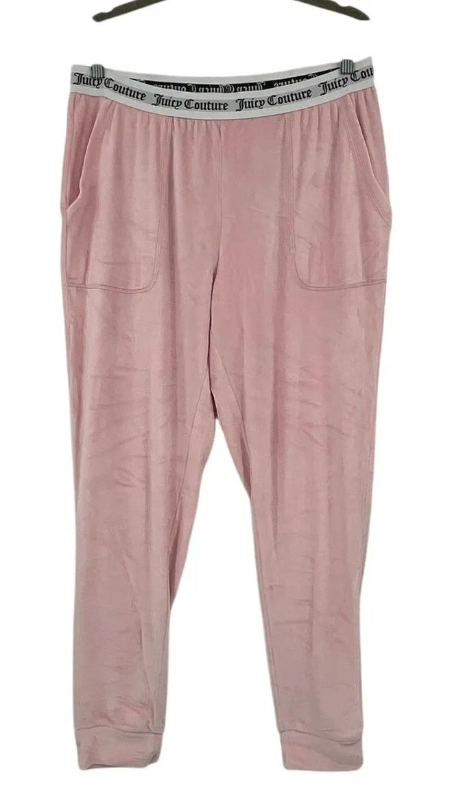 Pastel Pink Juicy Couture Velour Bling Logo Lounge Joggers Pants Side Pockets, Juicy on backside in... Show more