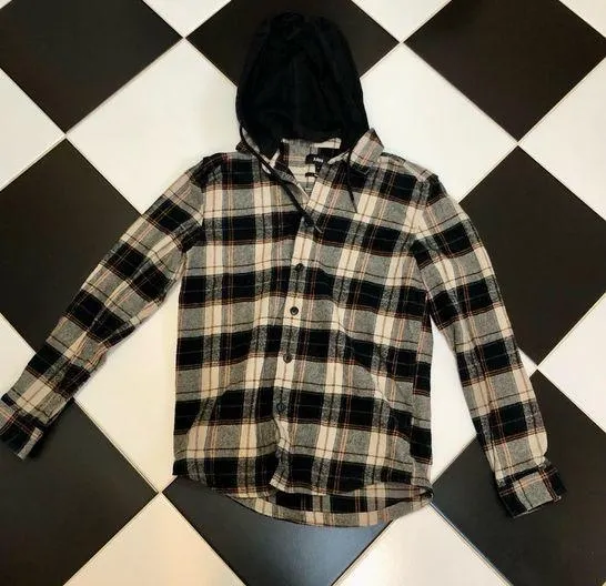 Button down flannel shirt Attached hoodie to give a layered look Hood can be removed with buttons Lo... Show more