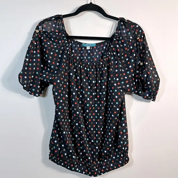 Julie’s Closet Black Polka Dot Off the Shoulder Cut Out Sheer Top Women Medium - $20 - From Jennifer