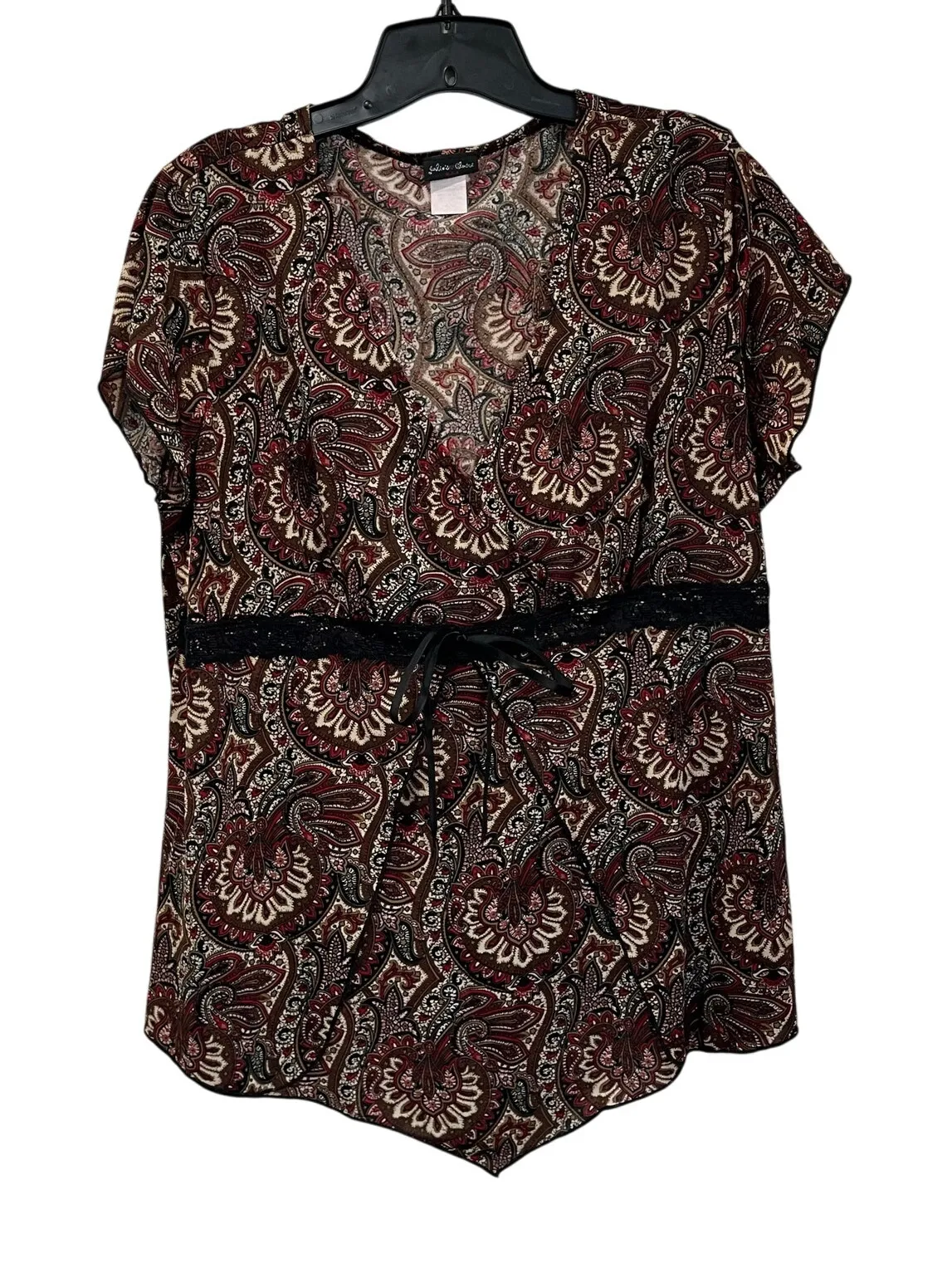 True Y2K energy in this Julie’s Closet top featuring a bold paisley print and black lace waist detai... Show more