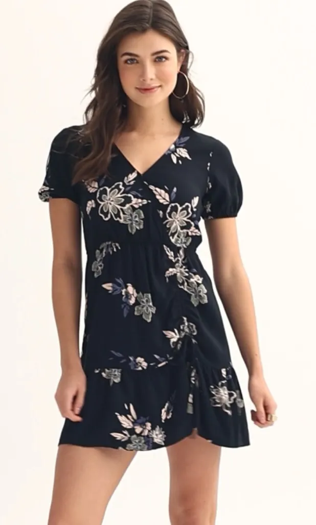 Give yourself a fun, floral style with this Juniors' SO® Asymmetrical Cinch Side Dress. FEATURES A-... Show more