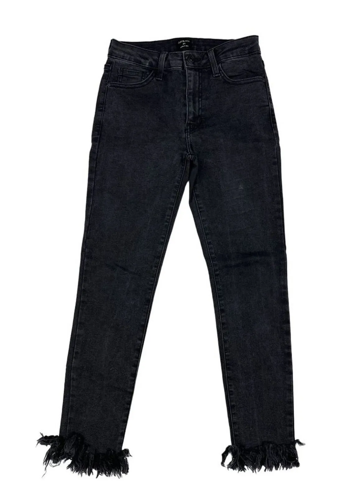 Just Black - Cropped Skinny Jeans with Fringe Hem in Washed Black Size 24 - $25 - From Dressed in