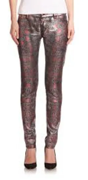 Just Cavalli Luxe Women's Silver Matallic Snake Skinny Jeans Cotton size 25 NWT Red - $100 New With Tags - From Melissa