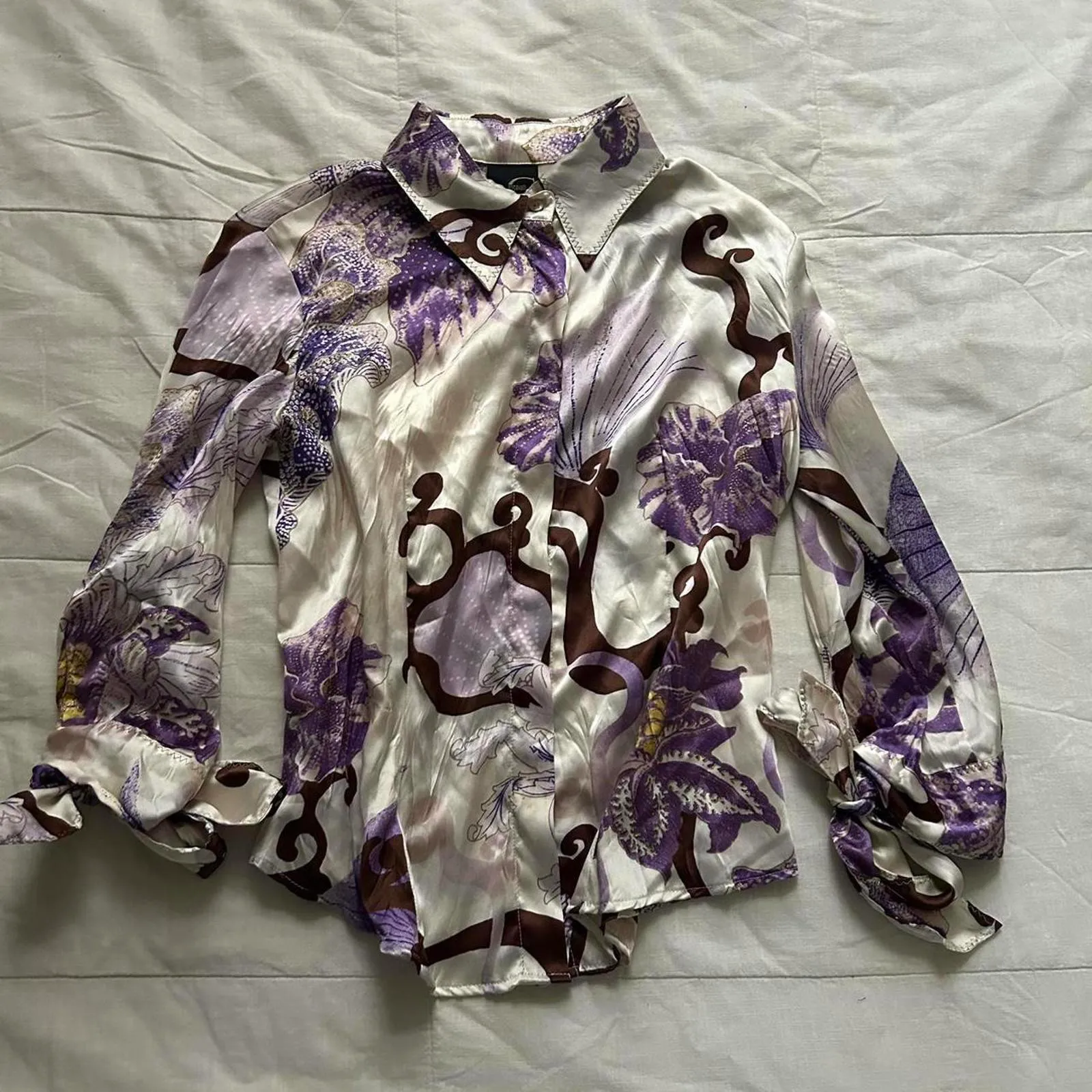 Just Cavalli Roberto Cavalli cream silk blouse purple gold floral print Size 44 - $75 - From Killah