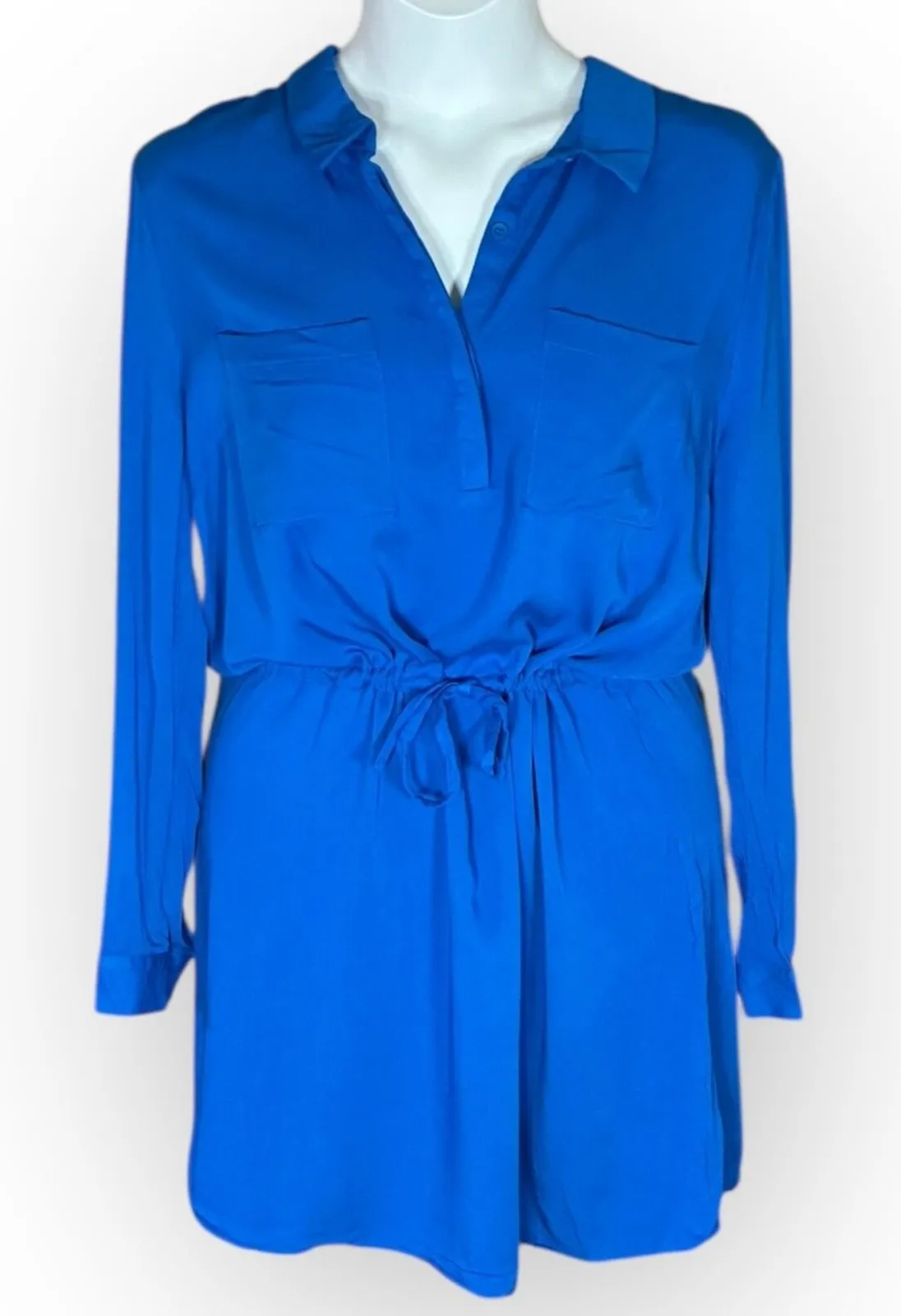 JustFab blue collared shirt dress in size XL with long sleeves and roll-tab cuffs. Easy casual "shir... Show more