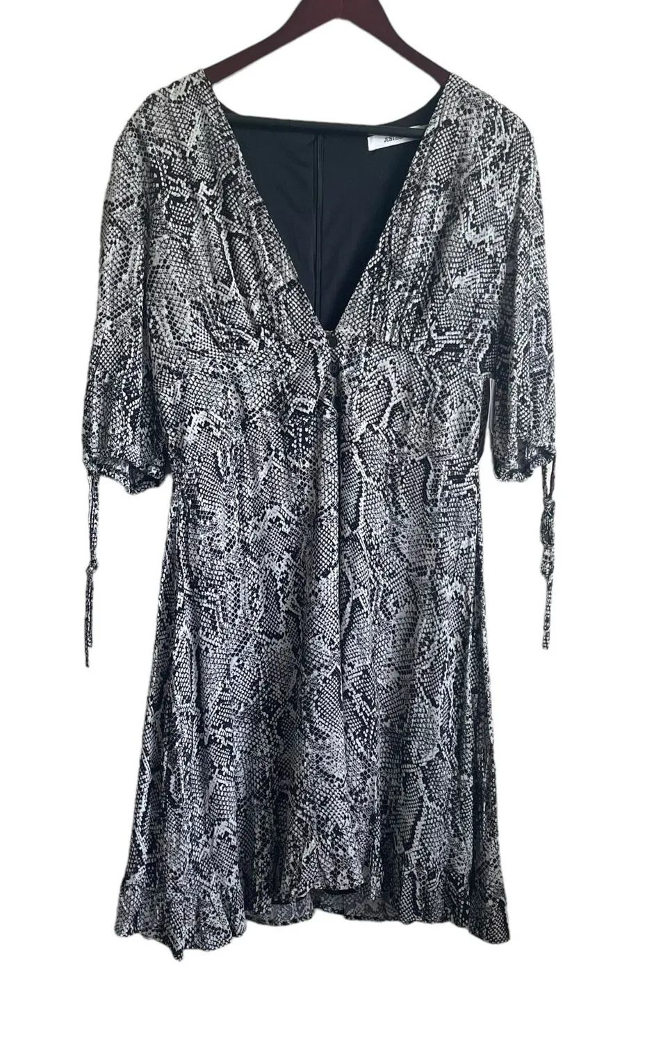 JustFab Women Sheath Dress XL Black Reptile Print Tie Sleeve Ruffle Hem NWT Excellent Condition - Se... Show more