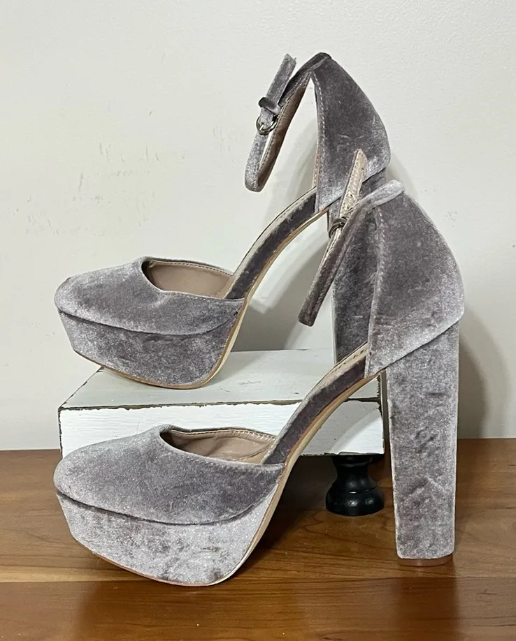 Women’s Just Fab Silver Purple Velvet High Heel Shoes Size 8.5 Heel measures 5.25” Platform measures... Show more