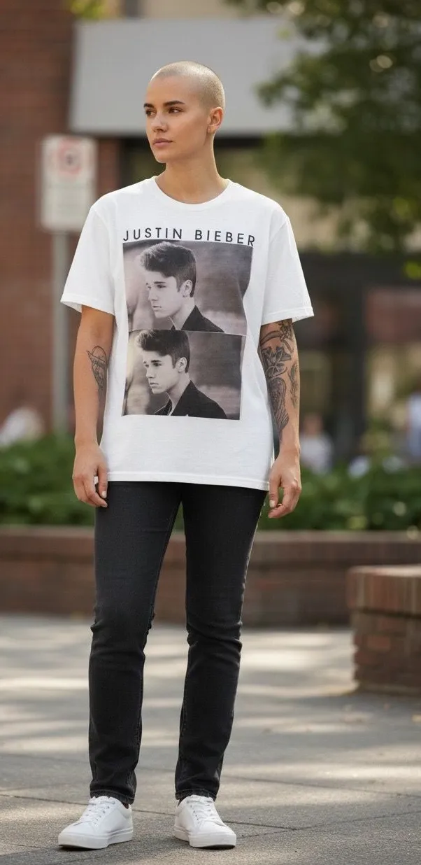 ACCEPTING OFFERS Pre-owned and in good condition. White graphic T-shirt featuring a black-and-white Justin Bieber photo print on the front with a clean solid back. No holes or major flaws noted. Light signs of wear consistent with normal use. Comfortable casual tee, perfect for fans or everyday streetwear. ACCEPTING OFFERS Pre-owned and in good condition. White graphic T-shirt featuring a black-and-white Justin Bieber photo print on the front with a clean solid back. No holes or major flaws noted. Light signs of wear consistent with normal use. Comfortable casual tee, perfect for fans or everyday streetwear.