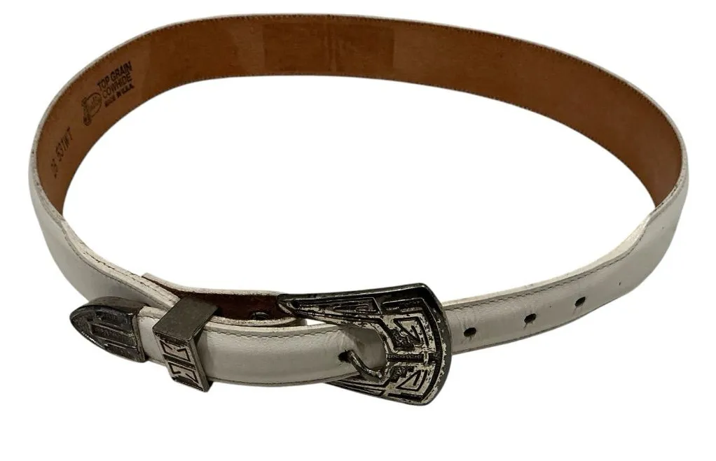 Vintage 90s cowboy belt top grain white leather belt snap-off buckle 28 - $15 - From Aura