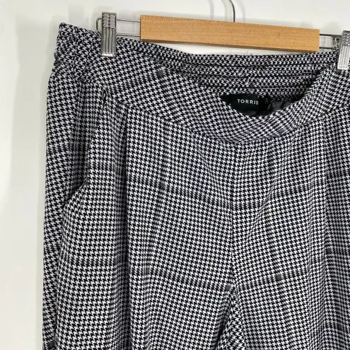 Black and white crepe pull on tapered pant. Elastic waistband for comfort. High Rise. Houndstooth pr... Show more