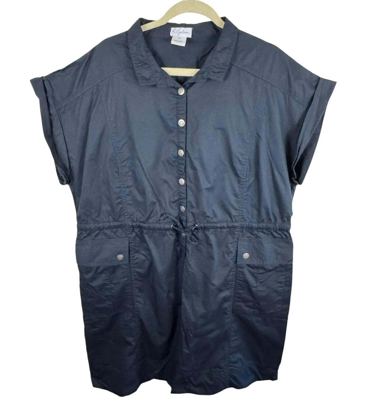 Excellent preowned condition. K. Jordan Navy Blue Short Cuffed Sleeve 1/2 Snap Up Knee Length Casual Dress. Has snap flap pockets on lower front. Has tie at waist. 100% cotton material. Approx. measurements: Shoulder to hem 39", pit to pit 26", waist across 23". Size 2X. About Treasures4Bristol: *Smoke free/pet free home *Offers welcome! *New items added daily *Bundles welcome! Save on shipping! *Fast shipping *All items shipped in clear sealed bags within outer packaging to protect from moisture. *Note that items may have some wrinkling develop during transportation. *Please feel free to ask any questions you may have, I’m more than happy to answer! *A portion of every sale is donated to Bo’s Heavenly Clubhouse, an organization that supports families in Wisconsin who have lost a child. I lost my beautiful 4-year old daughter Bristol in October 2022. I started this business in honor of her!