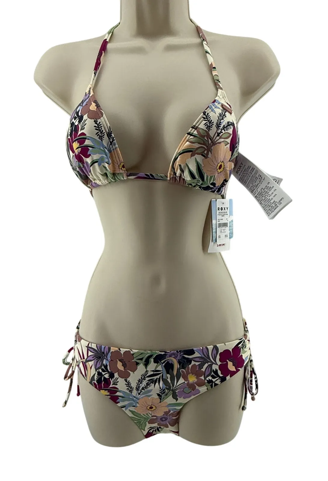 Roxy Floral Beach Classics Bikini Set -Beautiful Floral Beach Print -Tri Tie Top -Hipster Bottoms... Show more