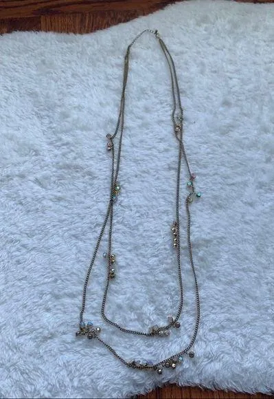 ⭐️ Gold Crystal Iridescent Double Layer Long Necklace - $11 - From Sophia