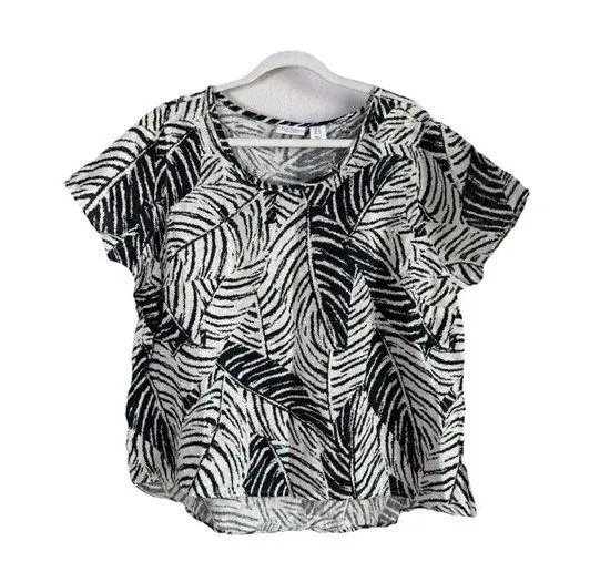 Elevate your wardrobe with this stunning Nicole Miller black palm print top. Made of 100% linen, thi... Show more