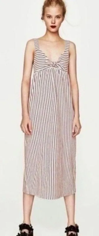 Zara Burgundy & Cream Striped Midi Dress Empire Waist Shift Pre-Loved In excellent condition Sle... Show more