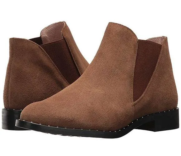 Patricia Green Palma Tan Leather Block Heel Studded Ankle High Boot Size 6 Size: 6 BRAND NEW WITHOUT BOX NEVER BEEN WORN NEW Suede on outside Premium Leather Upper Round Toe Easy slide on style Ankle-High Chelsea Boot Silhouette Smooth and Breathable Leather Lining Cushioned Footbed Studded Welt Details Stacked Heel 2" New and Ready for a walk in a fall fashion studded show